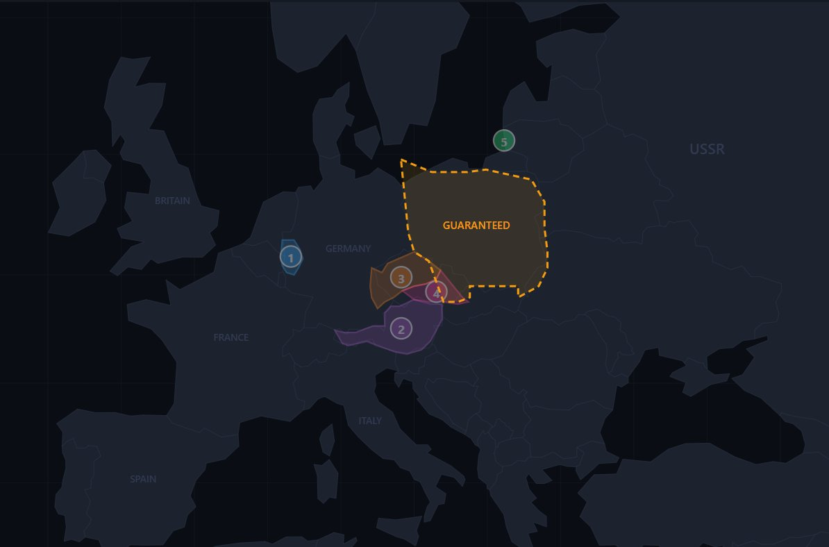 To był ostateczny próg dla Wielkiej Brytanii. Chamberlain natychmiast wydał gwarancję Polsce: Wielka Brytania wejdzie w wojnę z Niemcami, jeśli suwerenność Polski zostanie naruszona. Ribbentrop uznał to za blef. I rzeczywiście – Niemcy zajęły Memel na Litwie (niemieckie terytorium odebrane po I wojnie) zaledwie kilka dni po Czechosłowacji [5]. Żadne państwo nie wydało żadnego oświadczenia.
